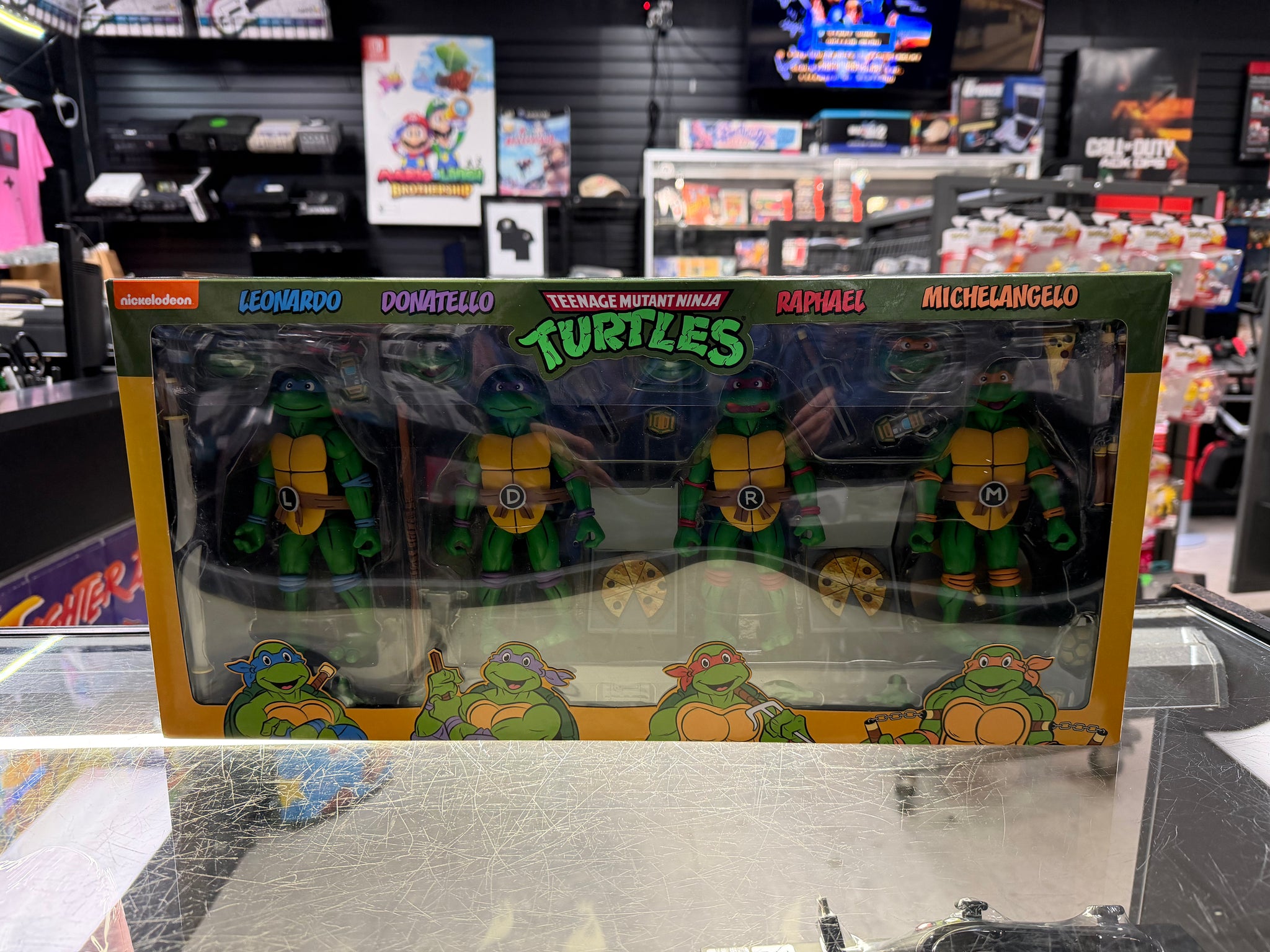 The NECA Teenage Mutant Ninja Turtles Haulathon Action Figure 4 Pack 2021 is a special edition collector's set featuring characters from the popular TV show and movie franchise. This limited edition pack includes action figures of Leonardo, Raphael, Donatello, and Michelangelo, standing at 6 inches tall and fully jointed for display and play. The figures are made of plastic and come in a multicolor design that stays true to the beloved animated series. Perfect for fans of all ages, this exclusive set is a must-have for any Teenage Mutant Ninja Turtles enthusiast.